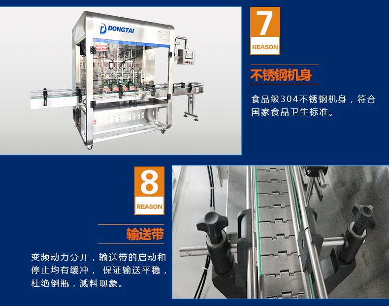 8.變頻動力分開,輸送帶的啟動和停止均有緩沖,保證輸送平穩(wěn),杜絕倒瓶,濺料現(xiàn)象。