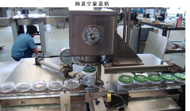 XJ-1型數(shù)控馬口鐵爪式真空旋蓋機(jī)是在技術(shù)上采用了真空室的完全密封結(jié)構(gòu),在真空室中先抽瓶子內(nèi)真空在配蓋旋蓋。并且利用目前成熟的電氣控制技術(shù)和高性能的氣動元件實現(xiàn)編程控制從而實現(xiàn)直筒式全密封真空室的旋轉(zhuǎn)驅(qū)動。真空旋蓋機(jī)的包裝容器內(nèi)能保持真空同時具有剛性,不易癟。蓋子內(nèi)用密封膠將瓶子旋合,瓶內(nèi)的真空可以長時間保存。真空室處于筒狀空間幾乎不存在間隙并無泄漏,他的抽真空效率是高、能耗低。