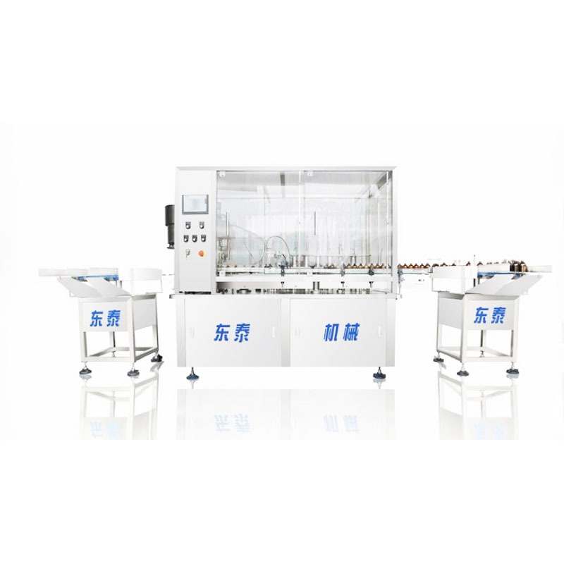 西林瓶(penicillin bottle),又稱(chēng):硼硅玻璃或鈉鈣玻璃管制(模制)注射劑瓶,是一種膠塞封口的小瓶子。早期盤(pán)尼西林多用其盛裝,故名西林瓶。西林瓶灌裝的多為液體,藥品、營(yíng)養(yǎng)液等,針對(duì)這種小瓶型液體灌裝,機(jī)械廠(chǎng)家制造出小計(jì)量液體灌裝機(jī)來(lái)幫助液體灌裝的灌裝和生產(chǎn),小計(jì)量液體灌裝機(jī)也叫作西林瓶灌裝旋蓋一體機(jī),小計(jì)量液體灌裝機(jī)屬于聯(lián)動(dòng)機(jī),其工作步驟包含了理瓶、灌裝、理蓋。掛蓋。壓蓋、旋蓋的步驟,滿(mǎn)足了液體包裝的大部分步驟,那么液體灌裝機(jī)該如何選擇呢?