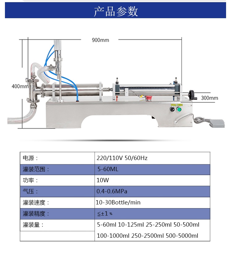 產(chǎn)品名稱(chēng):小型半自動(dòng)單頭液體灌裝機(jī)