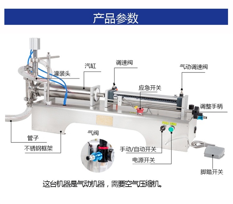 小型半自動(dòng)單頭液體灌裝機(jī)氣缸細(xì)節(jié)展示
